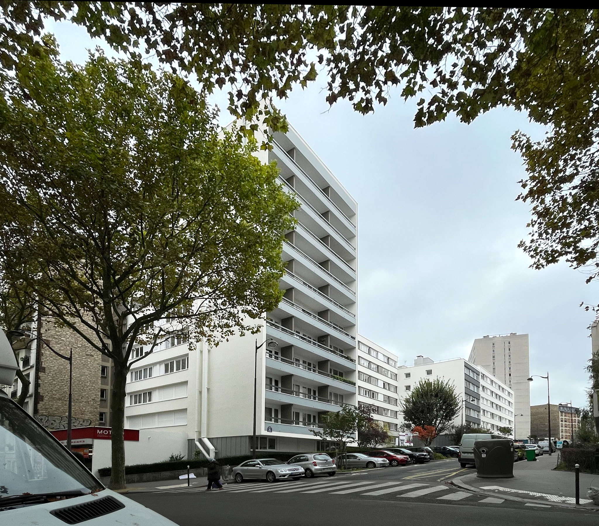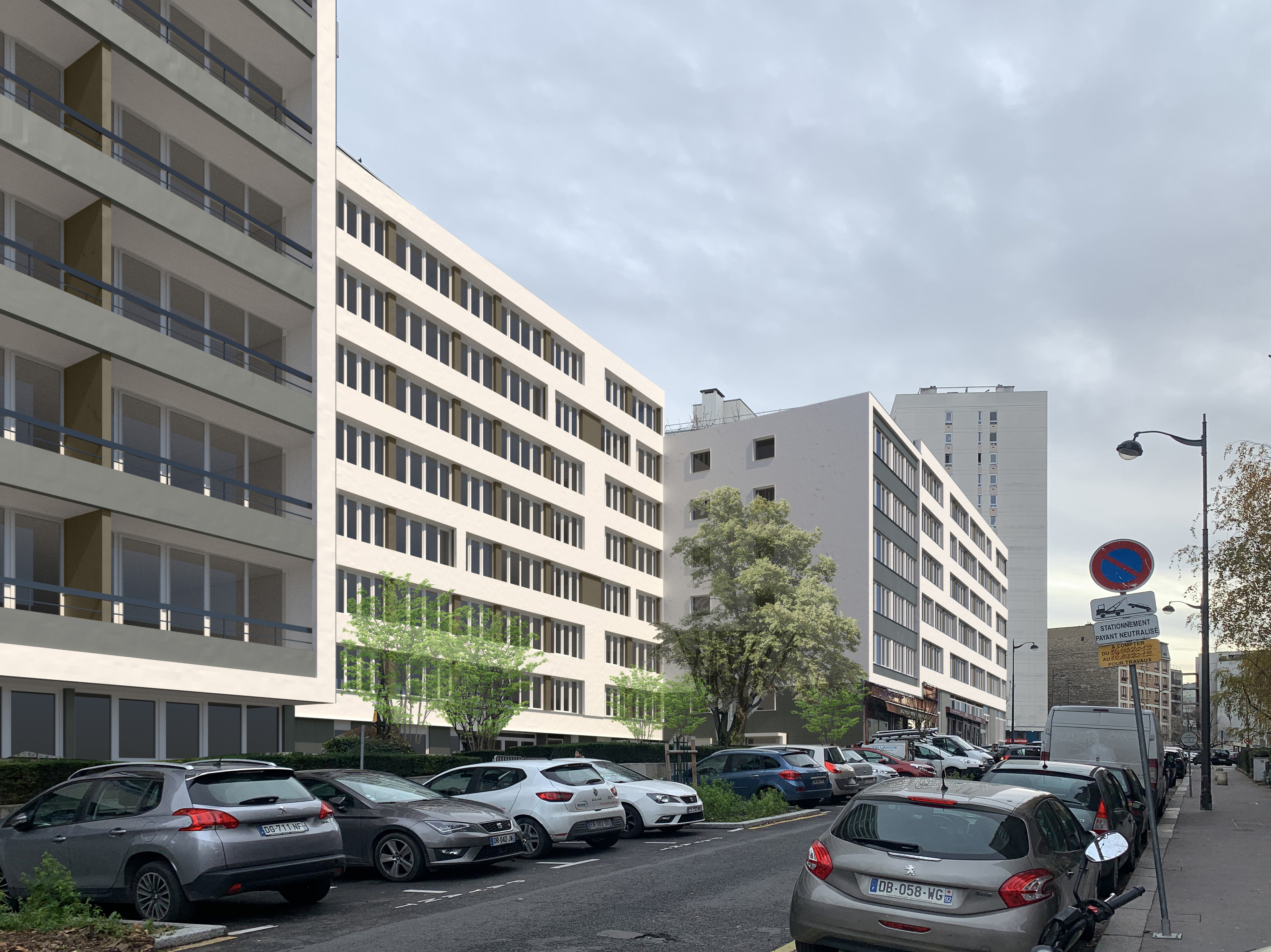 Réhabilitation en milieu occupé de 93 logements : Ravalement avec ITE, remplacement des menuiseries extérieures, réfection des toitures terrasses, réhabilitation en parties privatives et communes, rénovation des cabines d'ascenseurs, rénovation de la chaufferie.