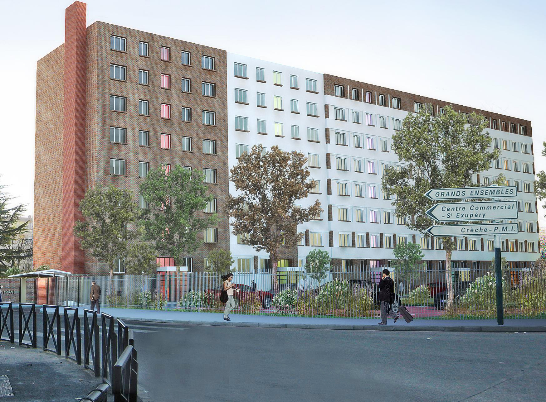 Réhabilitation en milieu occupé de 150 logements : réfection des parties privées et communes, réhabilitation des parkings, installation du tri sélectif et résidentialisation de l'ensemble