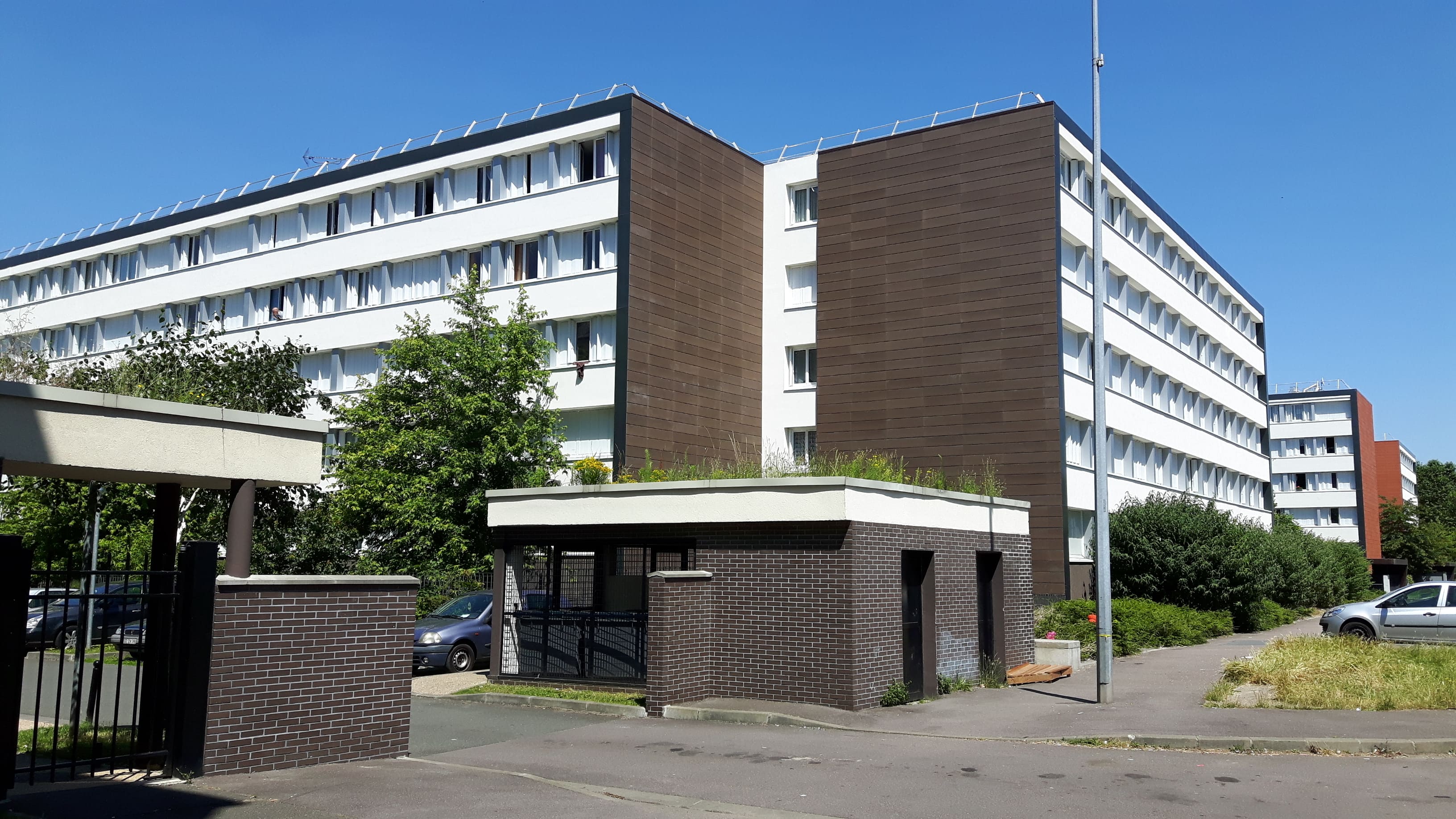 Réhabilitation en milieu occupé d'un ensemble de 260 logements : isolation des façades, réfection complète des terrasses, reprise complète de la VMC, réfection des pièces humides, reprise des installations électriques et réseaux EC/EF, remplacement des menuiseries extérieures, portes de halls et portes palières.