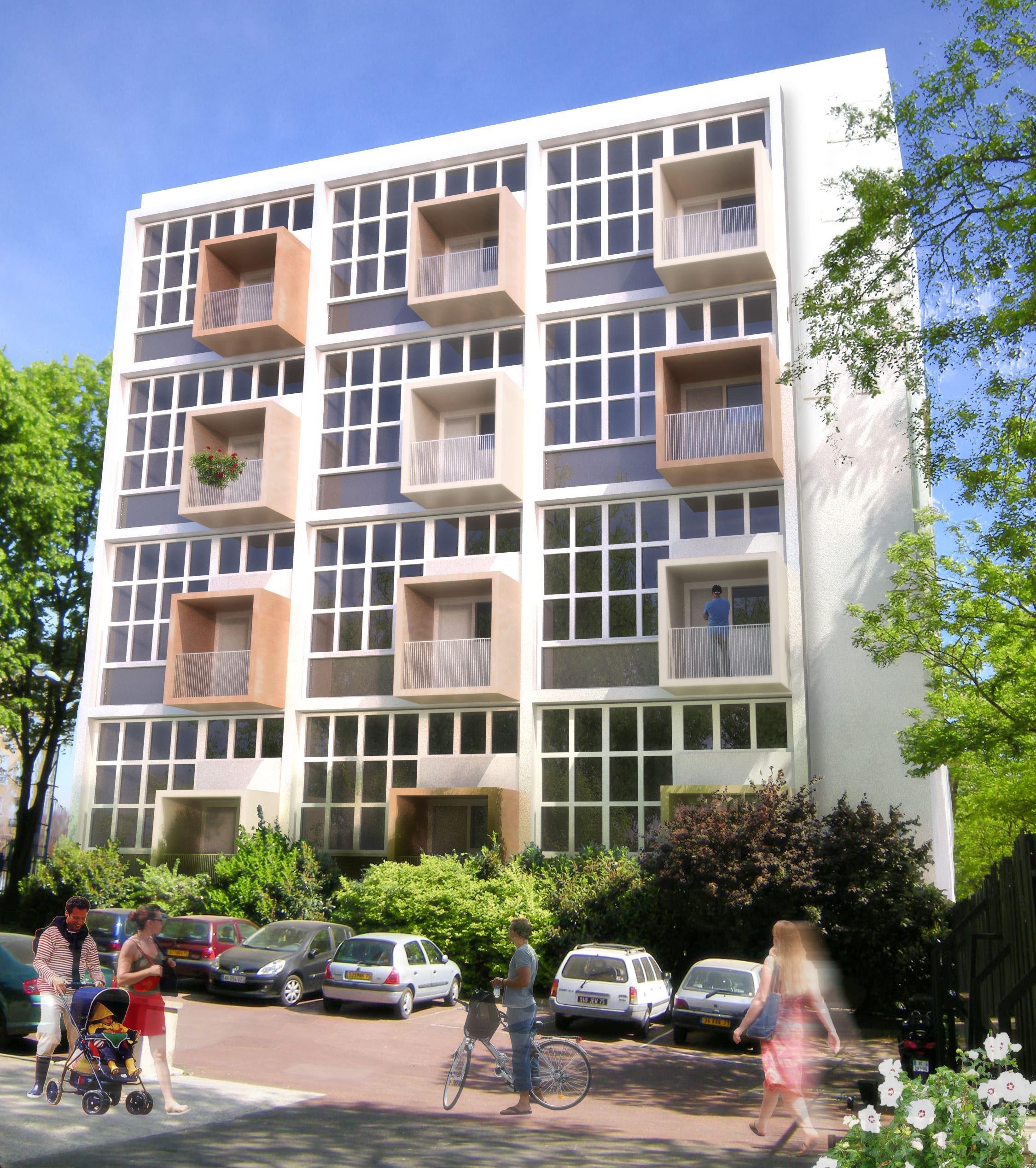 Réhabilitation et amélioration des performances thermiques d'un ensemble de 156 logements en milieu occupé : façades, étanchéité des toitures terrasses, menuiseries extérieures, ventilation, chaudières, flocage des sous-sols, contrôle solaire.