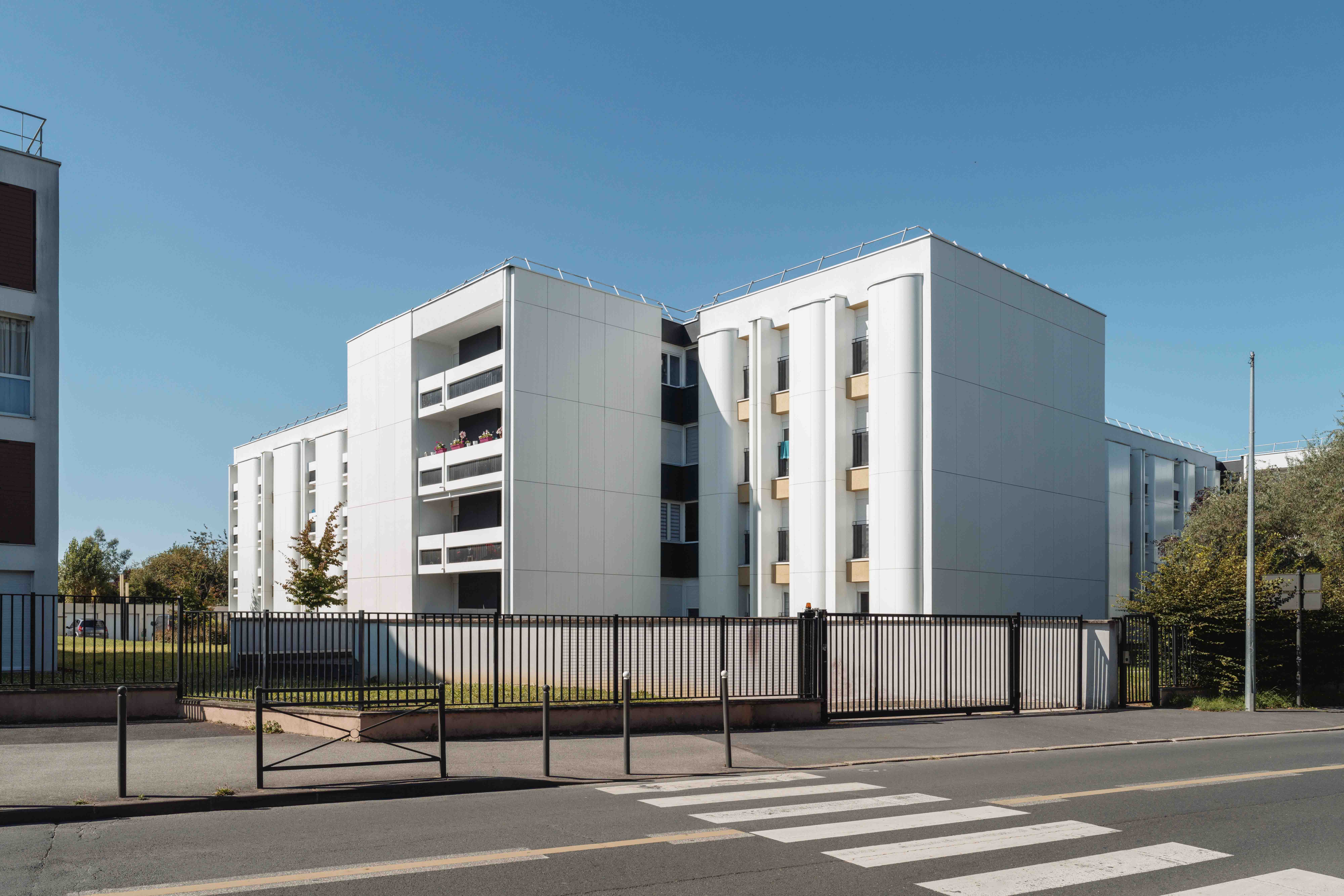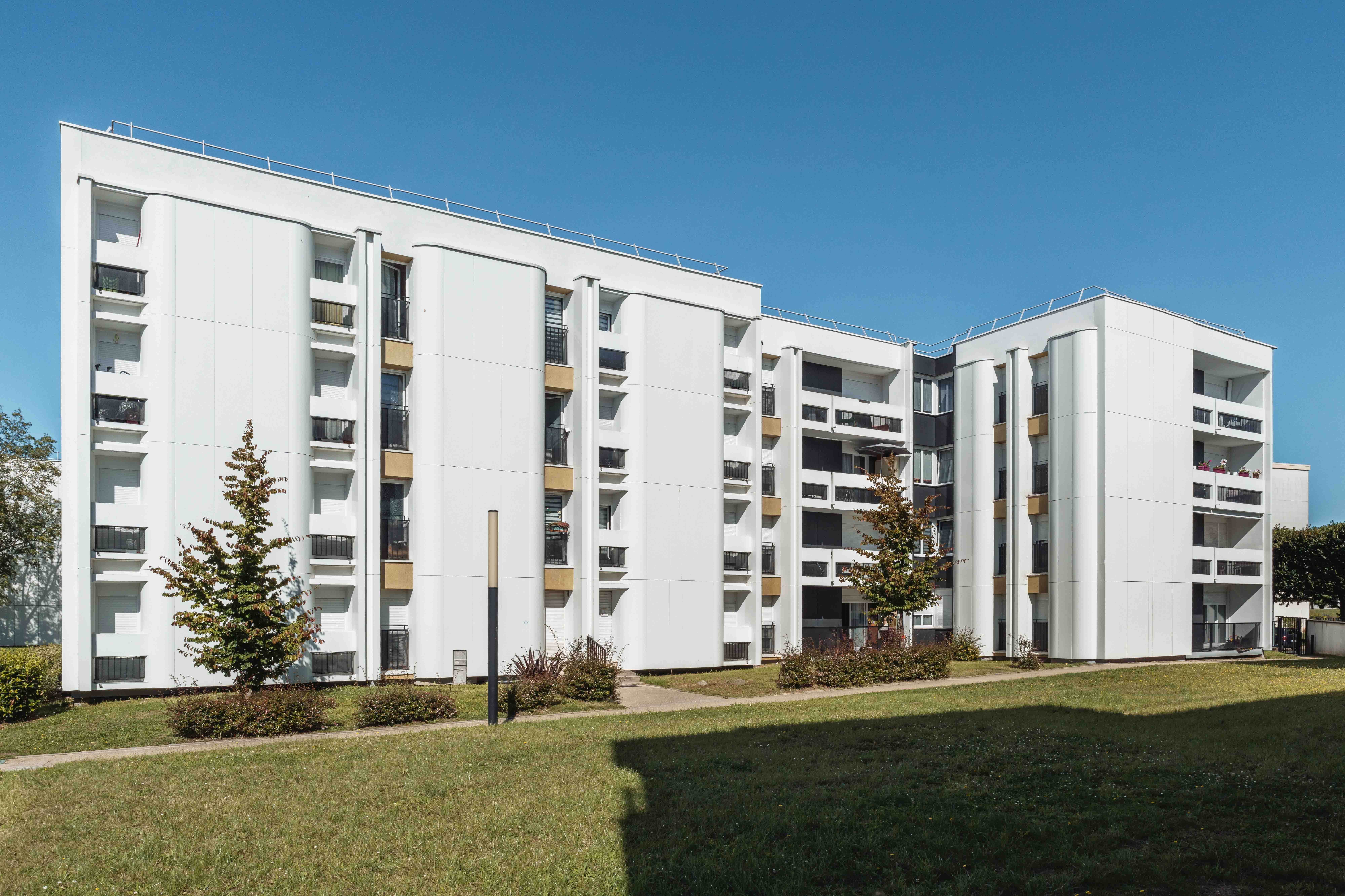 Ravalement des façades avec ITE, remplacement des menuiseries extérieures et intérieures, garde-corps, rénovation des halls, rénovation complète des pièces humides, VMC, éclairage des parties communes, réorganisation des OM