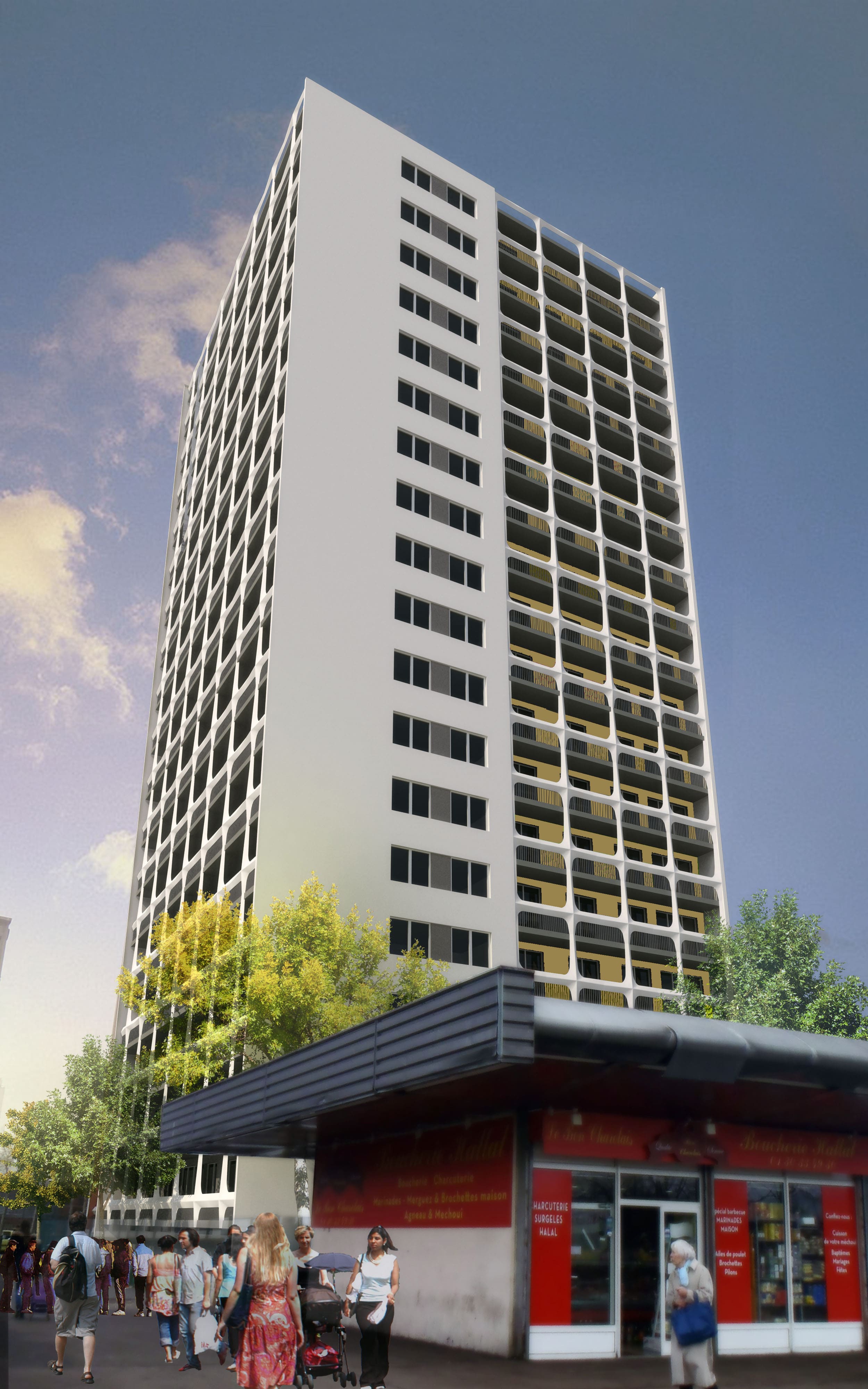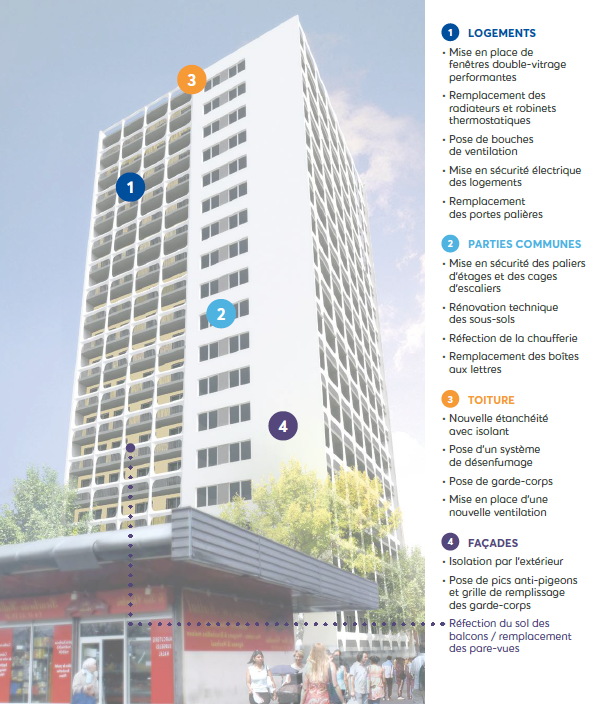 Requalification architecturale et thermique d'une copropriété de 72 logements : ravalement avec ITE, menuiseries extérieures, toiture, étanchéité, ventilation, chauffage