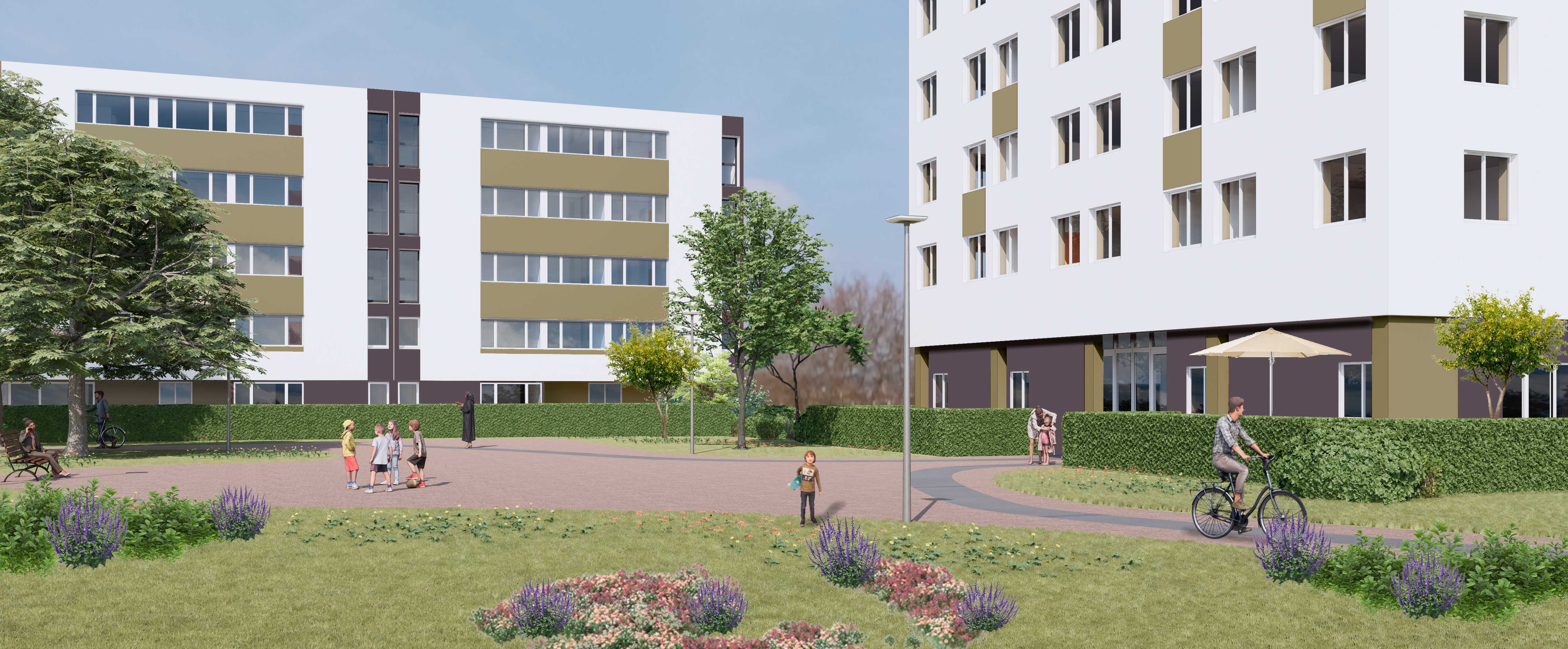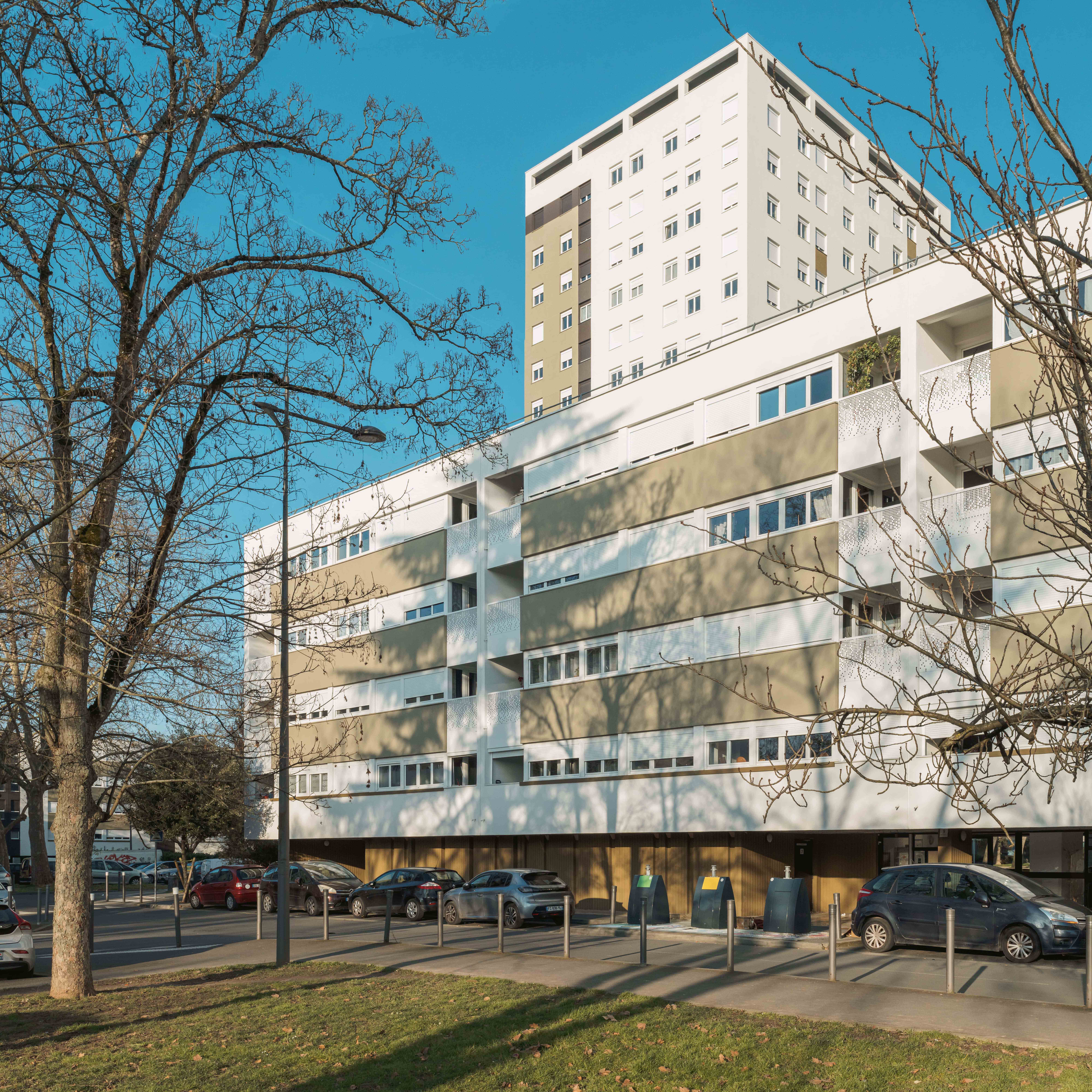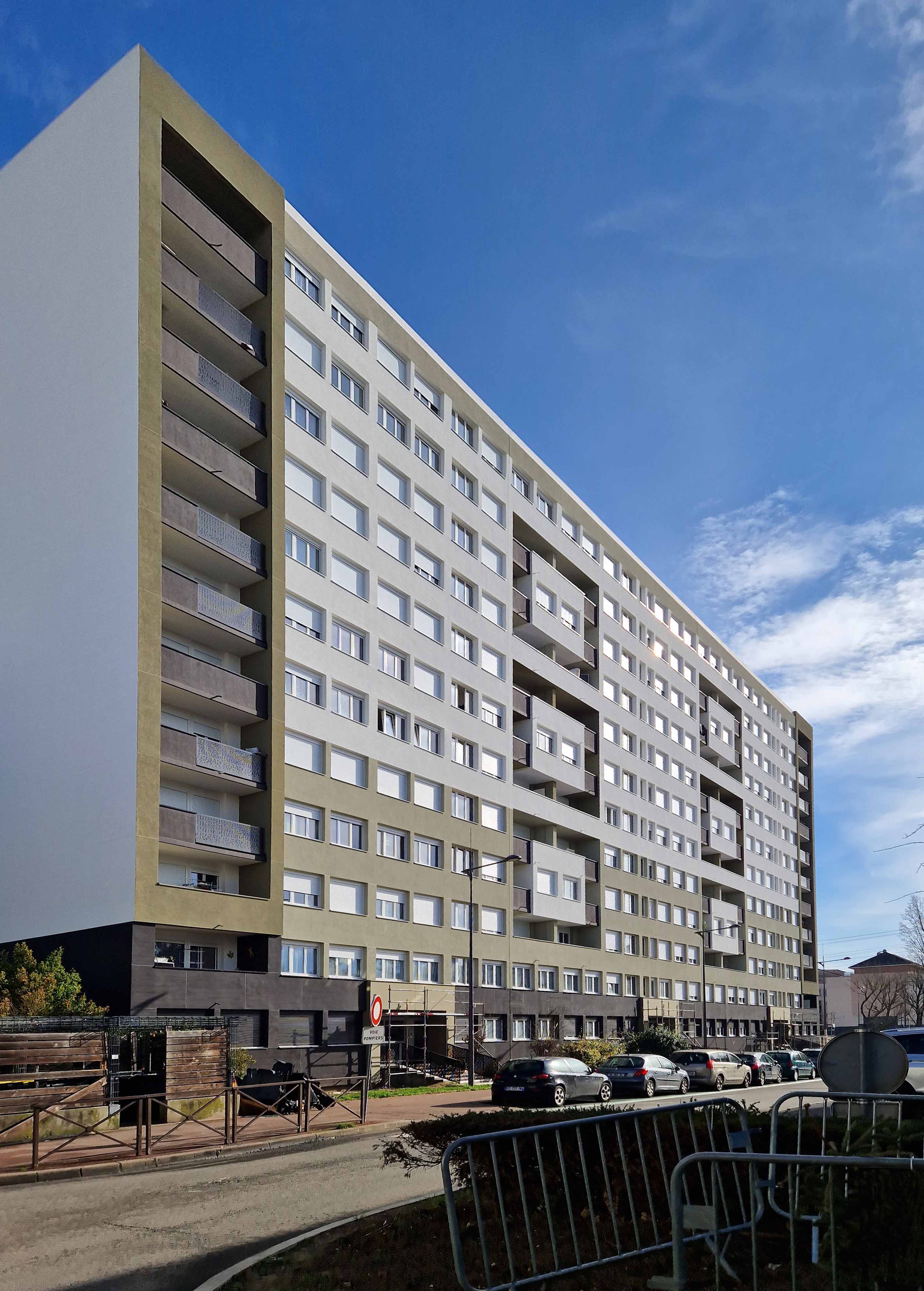 Réhabilitation énergétique de 589 logements en milieu occupé, création de 10 logements PMR et aménagement du centre commercial.