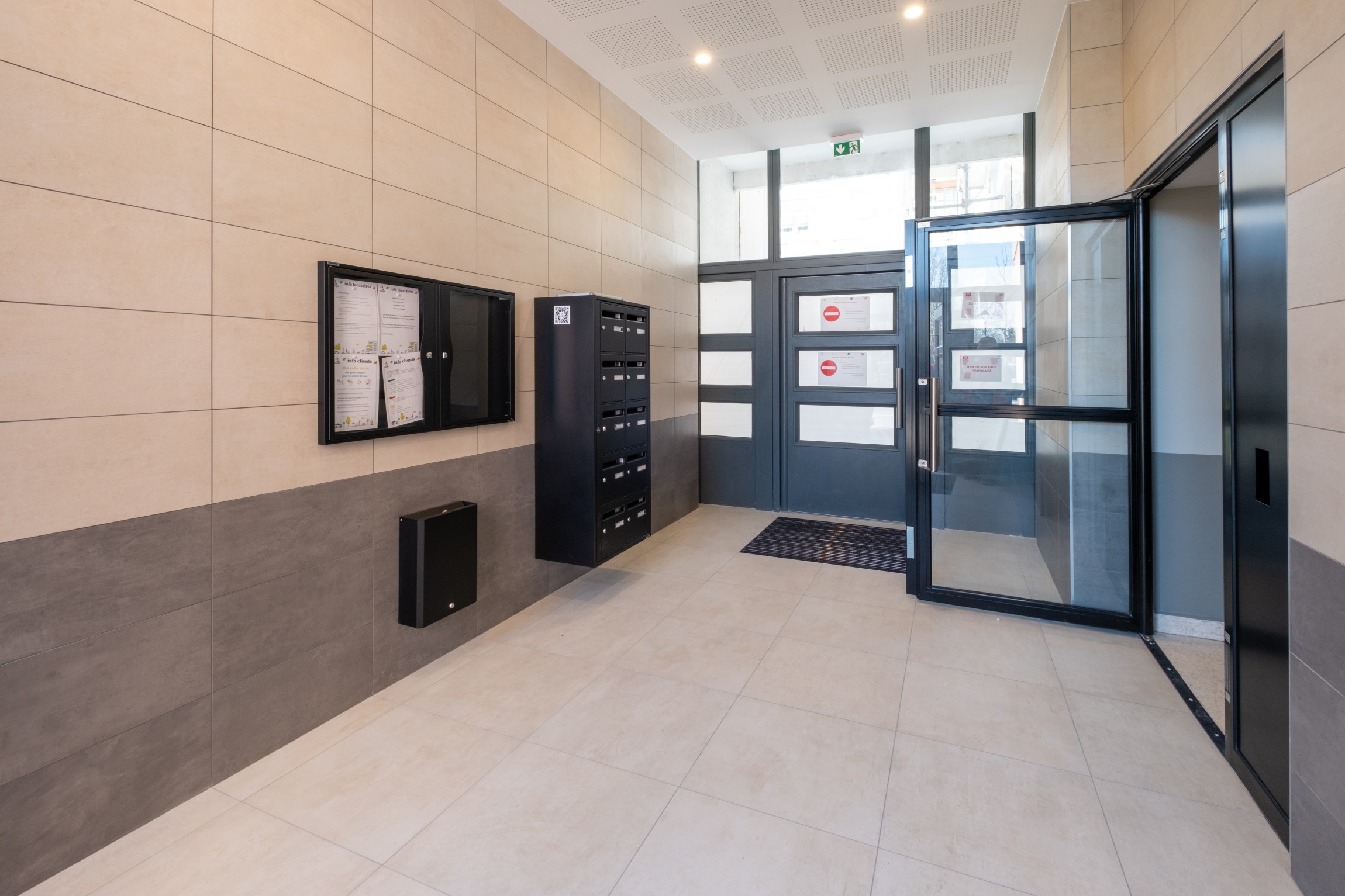 Les accès aux halls sont bien identifiés et personnalisés par une signalétique graphiquement intégrée à l’architecture, visible. Les halls eux-mêmes, sont rénovés pour proposer plus de confort et respectant le concept général d’élégance et de sobriété.