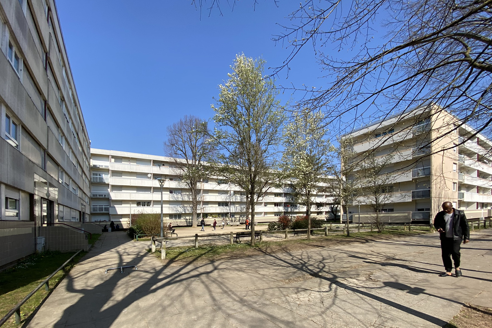 Le programme porte sur trois grands bâtiments tous relativement similaires en conception : rue Victor Hugo une barre qui forme ilot (barre 1), une barre ferme sur la rue Anatole France (2) et une barre en L (3) côté Edmond Rostand, toutes trois sont en R+4. Edifiés en 1965 sur un principe constructif en béton préfabriqué typique des années 60’ l’ensemble souffre d’un vieillissement flagrant et s’impose dans ce paysage du méandre de l’Yerres.