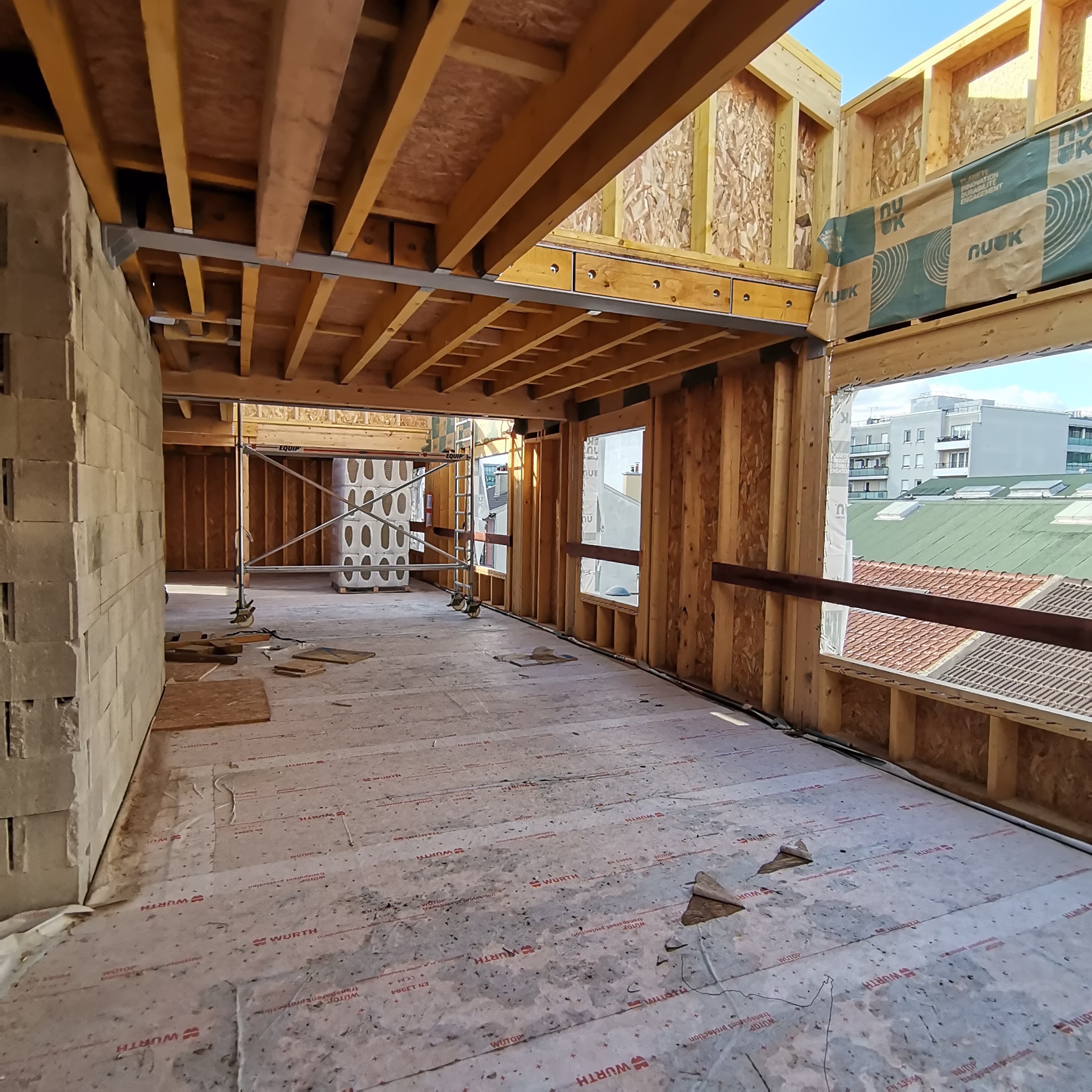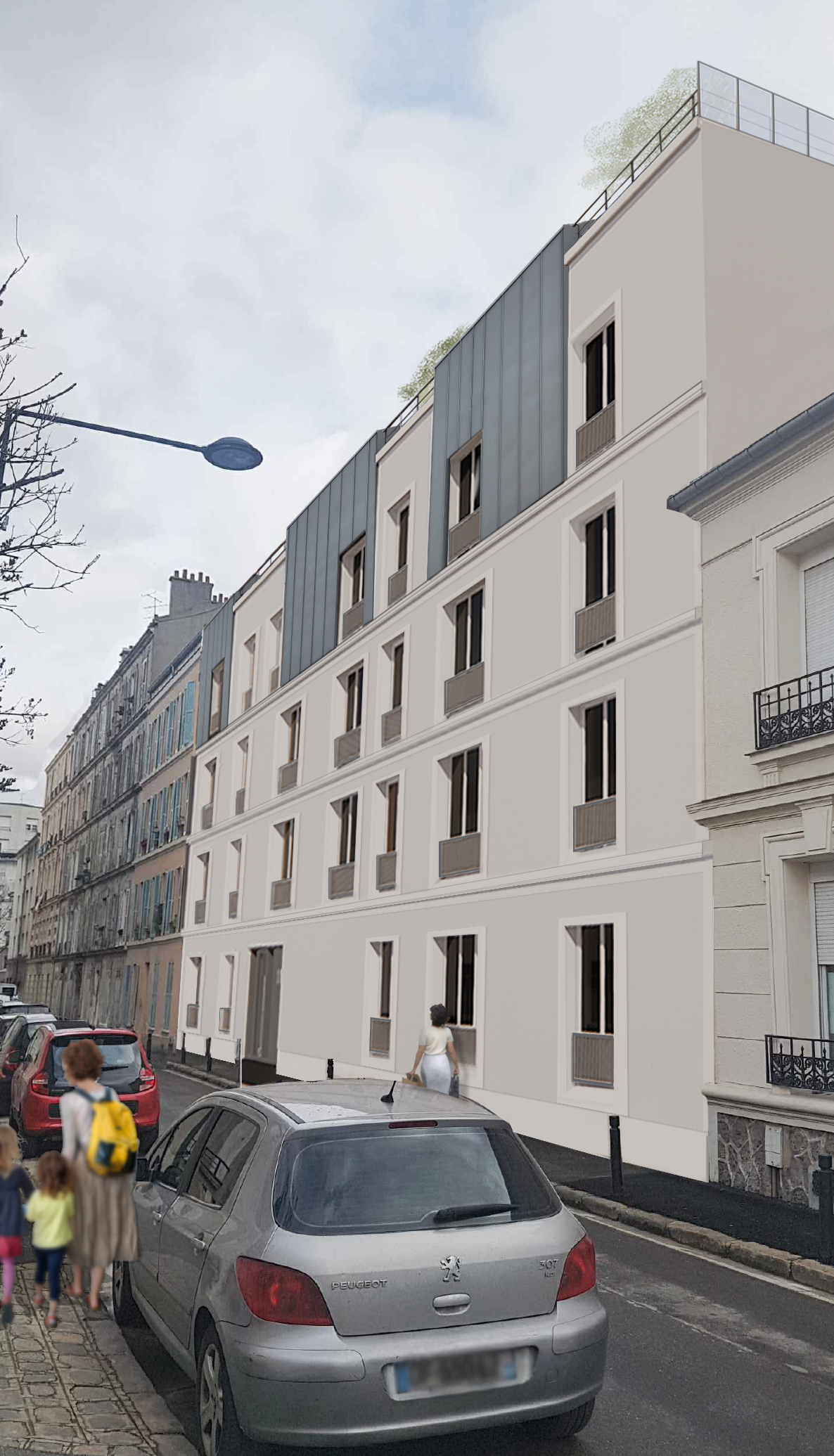 Restructuration et extension en surélévation d’un immeuble de 15 logements sociaux : structure porteuse bois COB, façades (EMI et ponctuellement