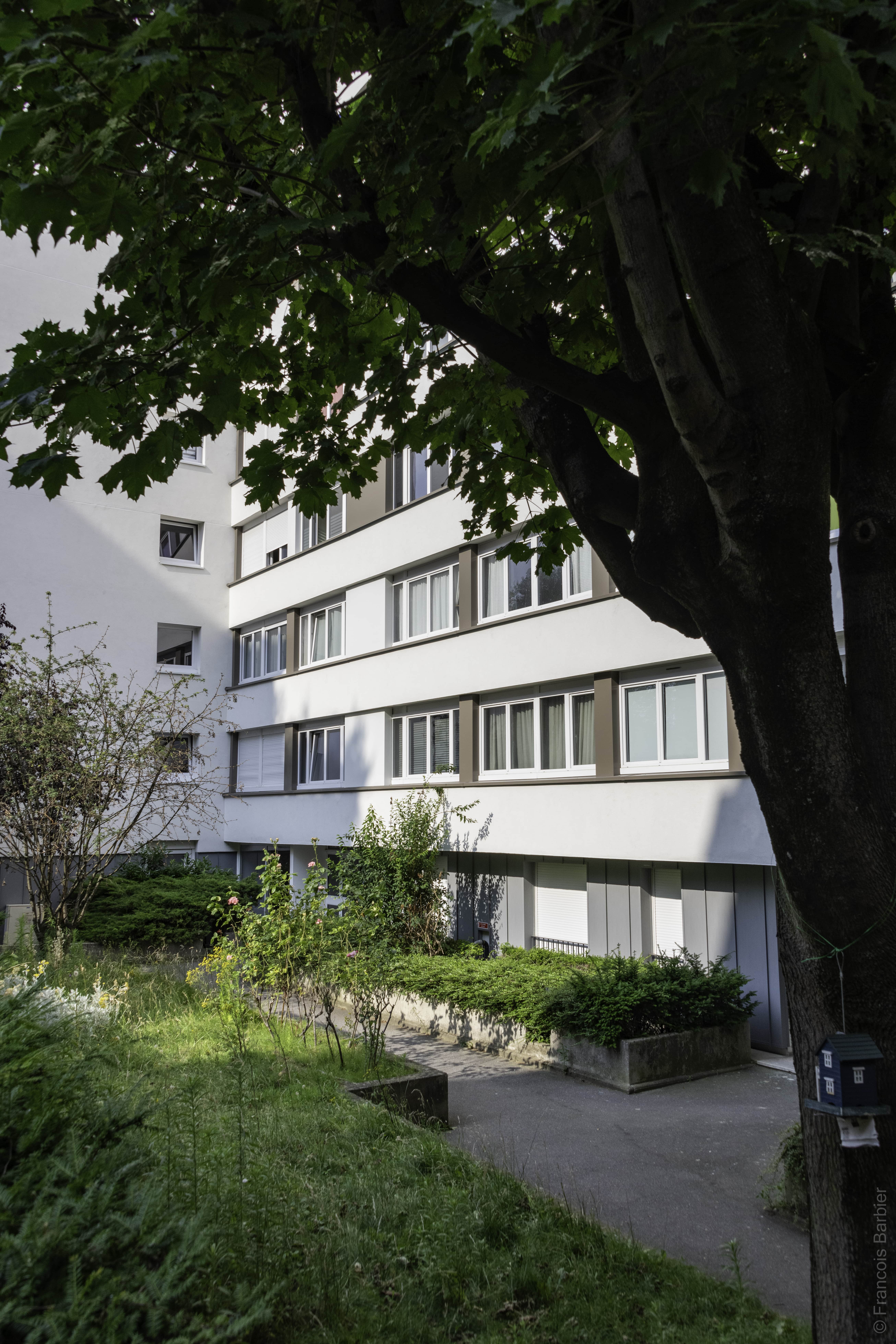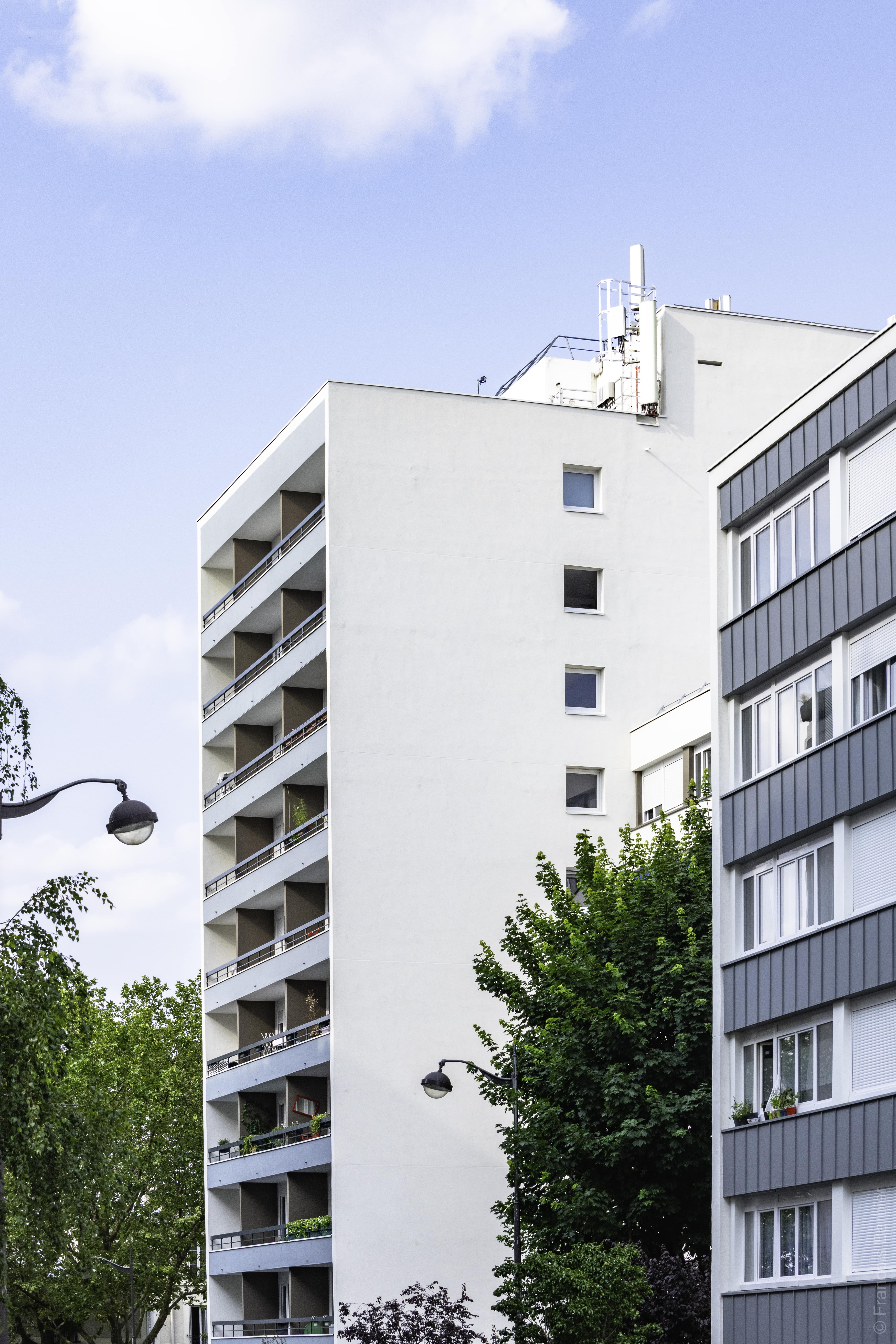 Réhabilitation en milieu occupé de 93 logements : Ravalement avec ITE, remplacement des menuiseries extérieures, réfection des toitures terrasses, réhabilitation en parties privatives et communes, rénovation des cabines d'ascenseurs, rénovation de la chaufferie.