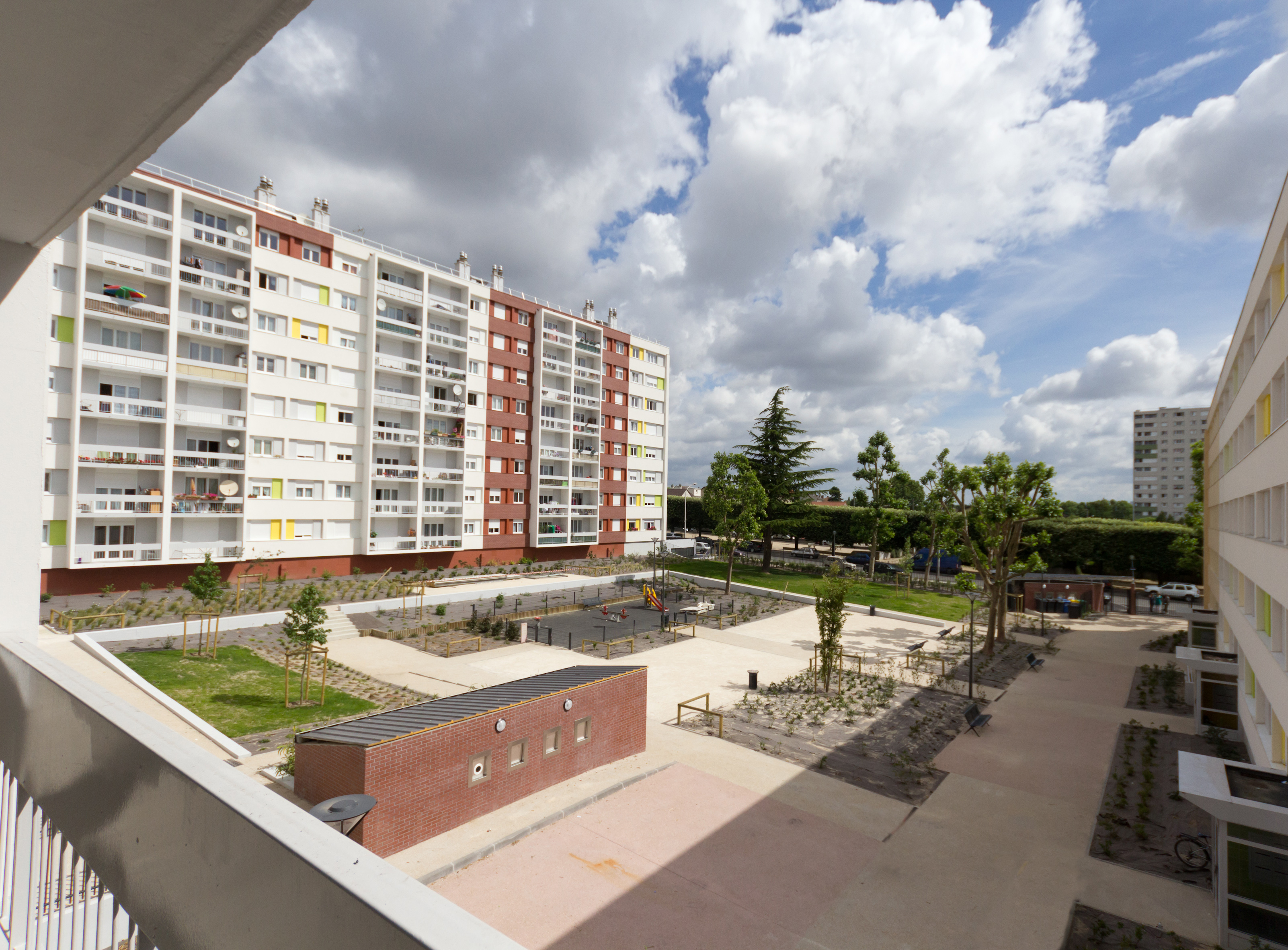Réhabilitation en milieu occupé de 150 logements : réfection des parties privées et communes, réhabilitation des parkings, installation du tri sélectif et résidentialisation de l'ensemble