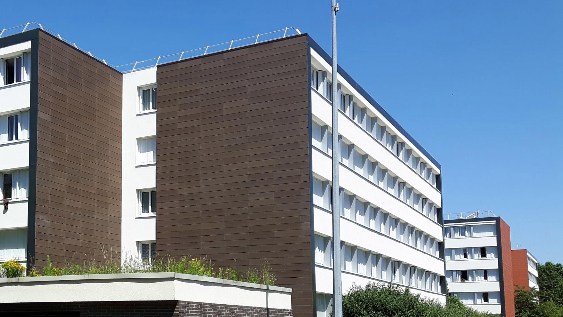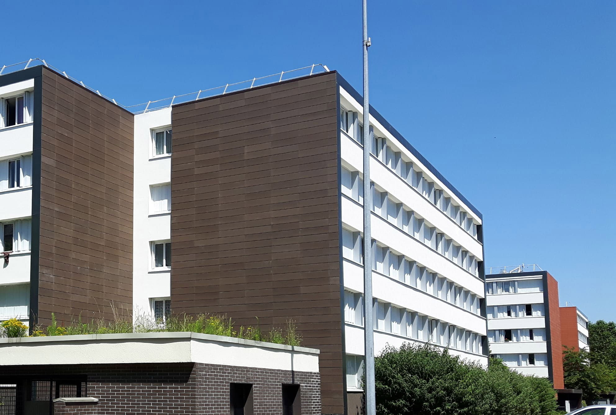 Réhabilitation en milieu occupé d'un ensemble de 260 logements : isolation des façades, réfection complète des terrasses, reprise complète de la VMC, réfection des pièces humides, reprise des installations électriques et réseaux EC/EF, remplacement des menuiseries extérieures, portes de halls et portes palières.