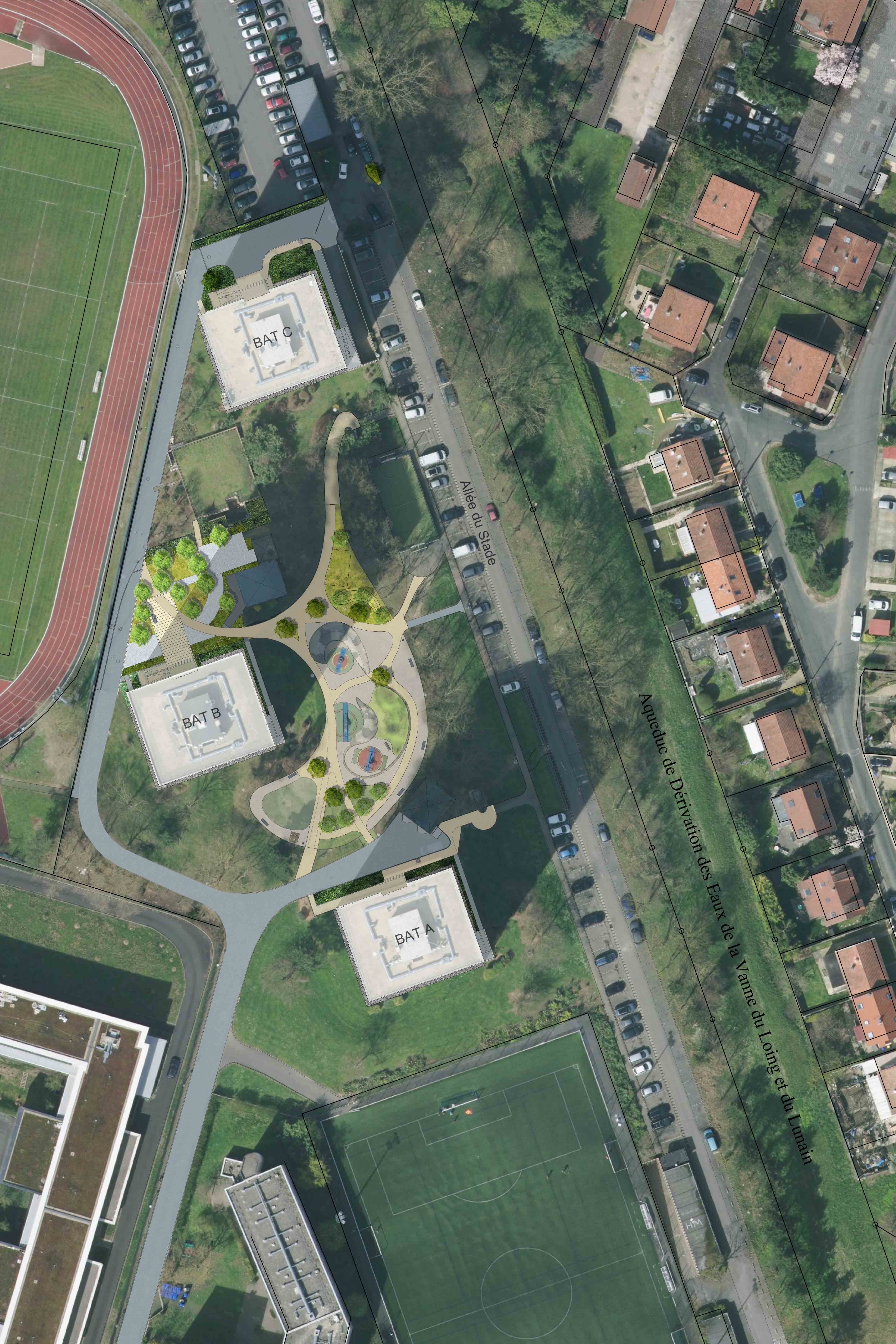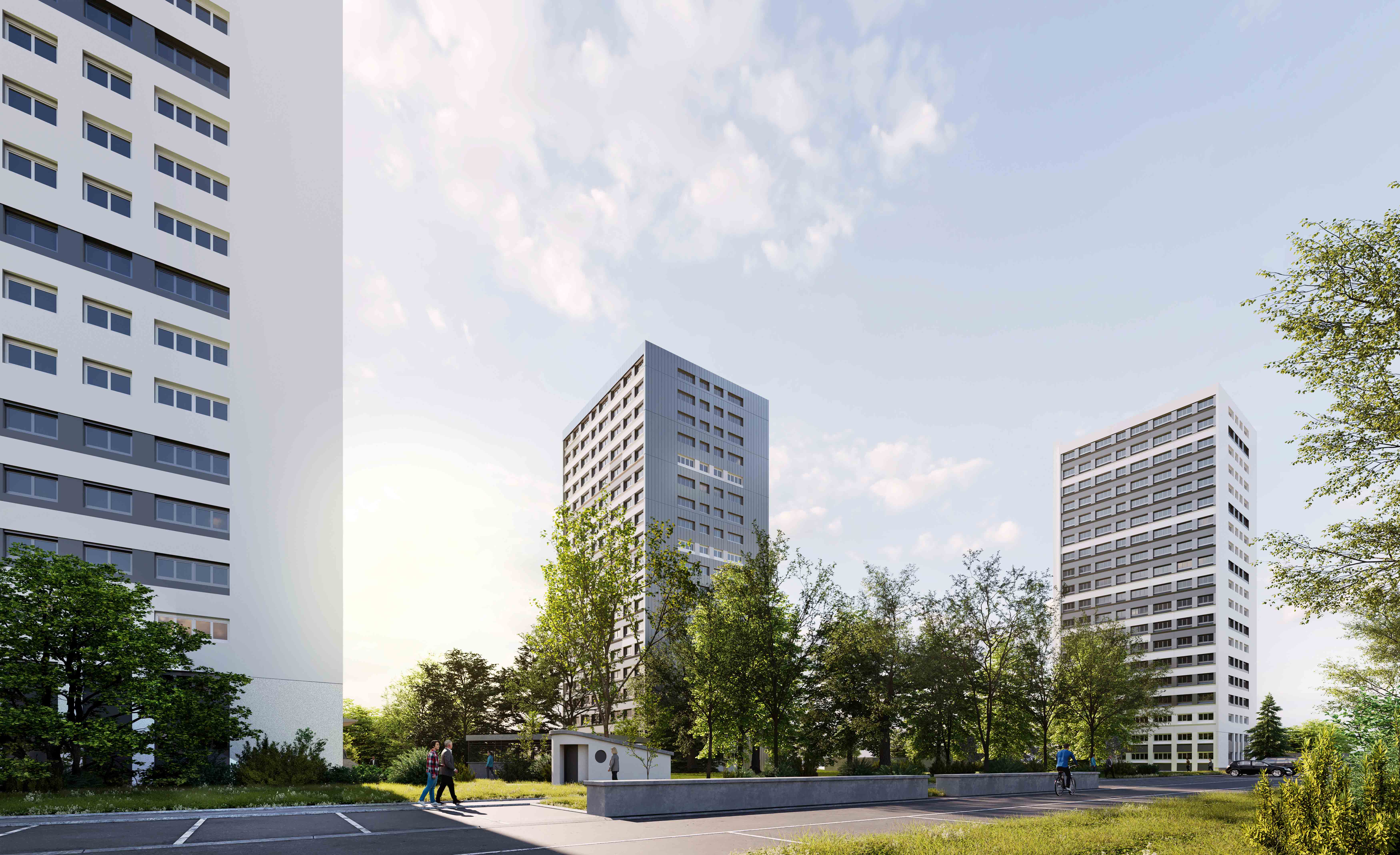 Requalification de l'aspect architectural du bâti pour un changement complet de l'image de la résidence à l'échelle du quartier, amélioration des performances thermiques (ITE, menuiseries extérieures, toitures terrasses, robinets thermostatiques, chauffage, VMC), amélioration des parties privatives (embellissement des pièces humides, adaptation de 60 logements PMR) et communes (embellissement, contrôle d'accès, électricité, éclairage, sécurité incendie, loge gardies, locaux annexes), requalification des espaces extérieurs pour une meilleure appropriation des espaces par les locataires et une sécurisation de la résidence (espaces verts, cheminements, aires de jeux, éclairage extérieur)