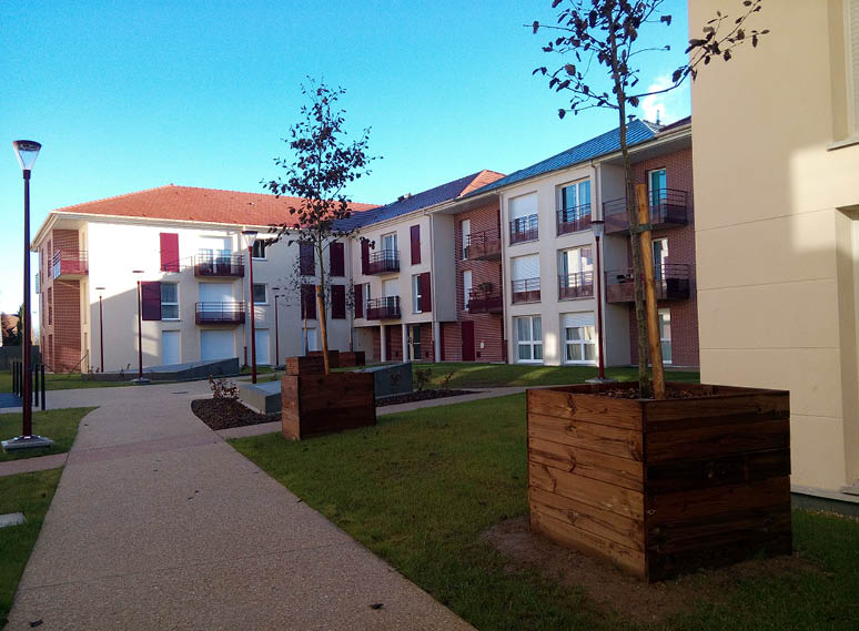 Réalisation des voiries de dessertes et reprise de la voirie existante, traitement des espaces extérieurs végétalisés.