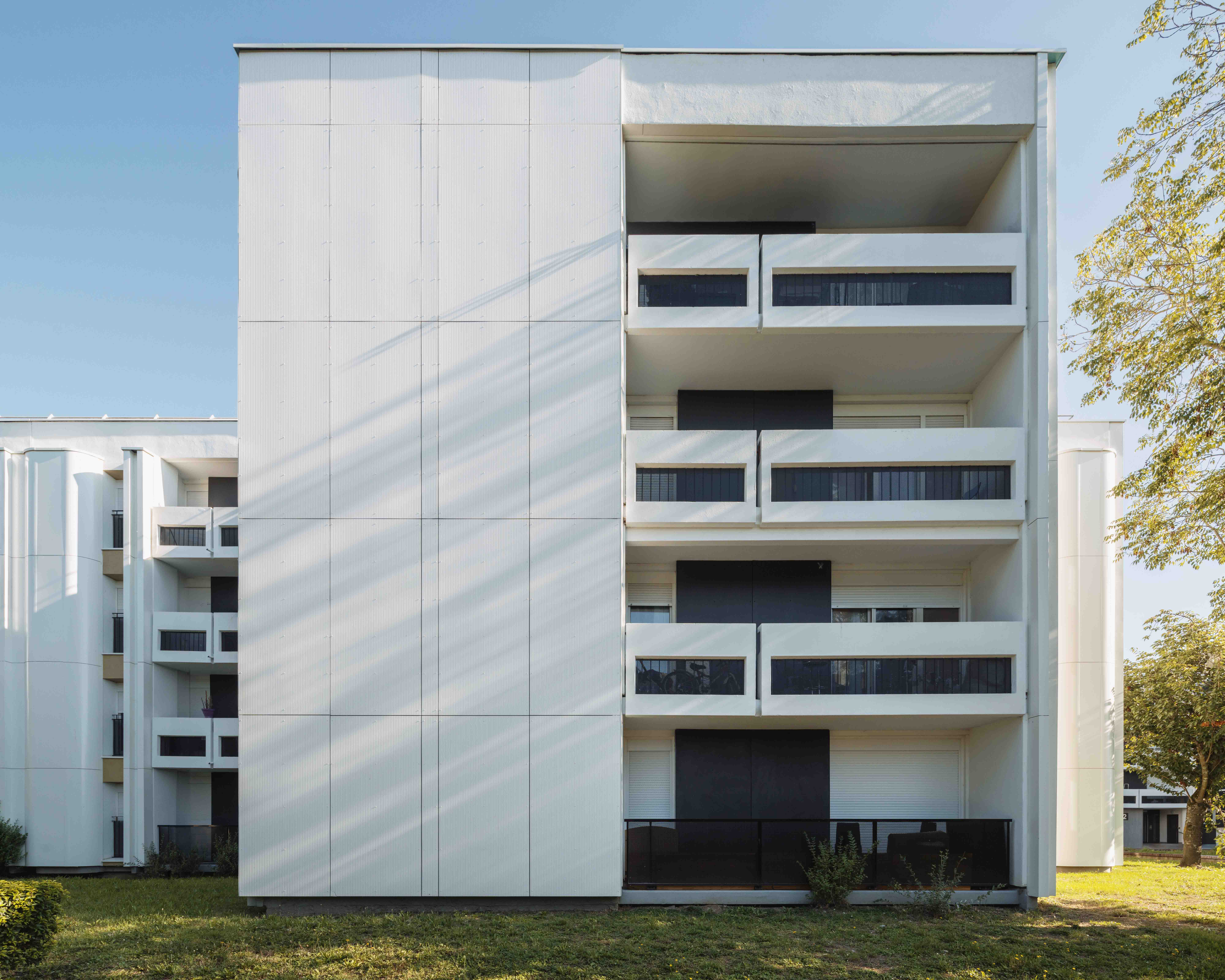 Ravalement des façades avec ITE, remplacement des menuiseries extérieures et intérieures, garde-corps, rénovation des halls, rénovation complète des pièces humides, VMC, éclairage des parties communes, réorganisation des OM