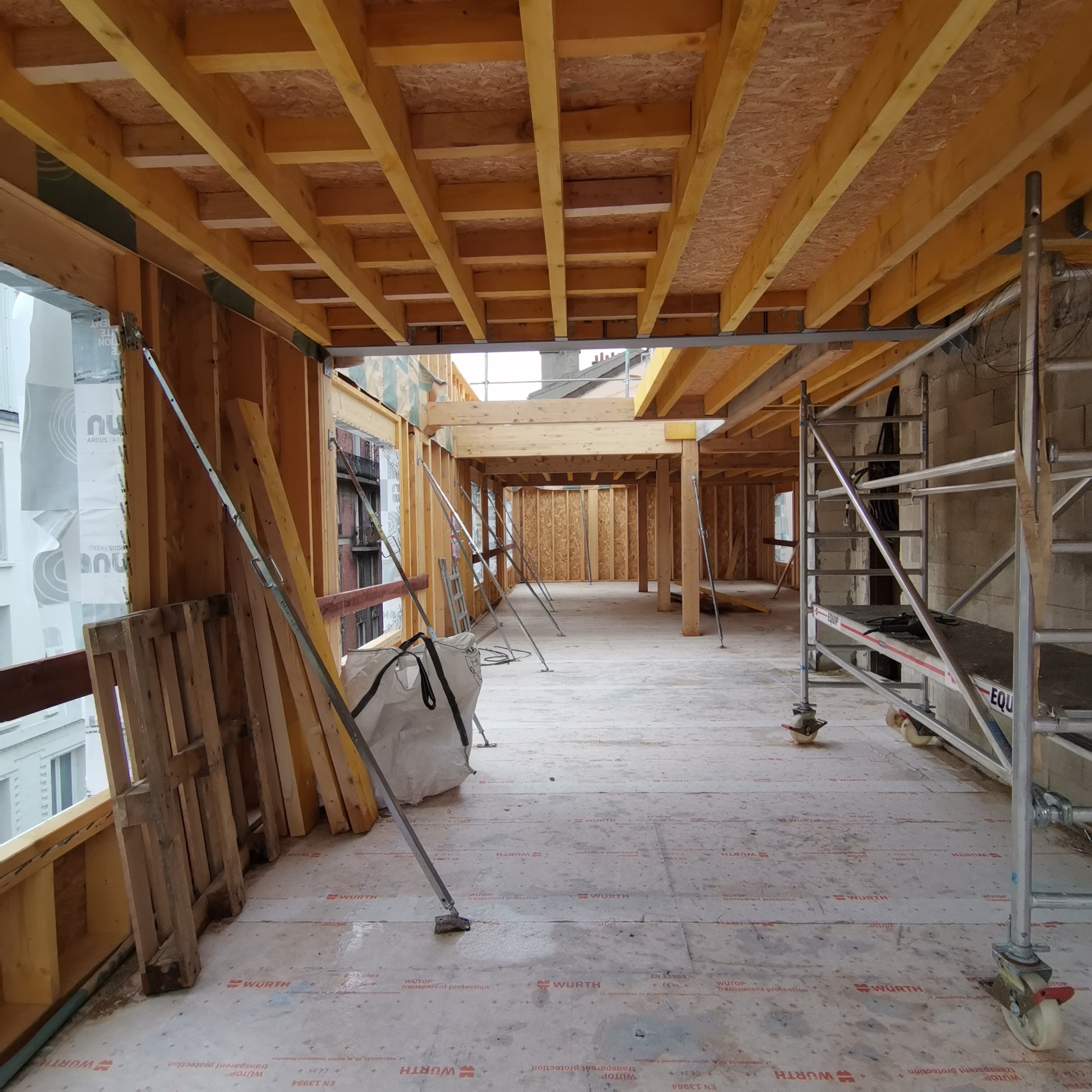 Restructuration et extension en surélévation d’un immeuble de 15 logements sociaux : structure porteuse bois COB, façades (EMI et ponctuellement